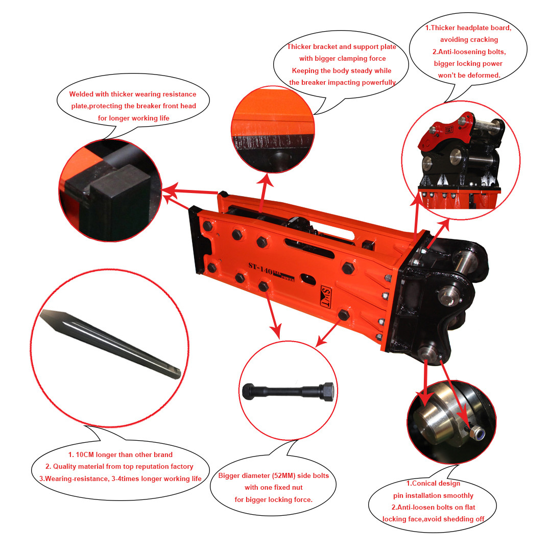 Hydraulic Breaker ST68 dirancang untuk menghancurkan material keras dengan efisiensi tinggi. Dengan daya pukul kuat, desain tahan lama, dan sistem peredam getaran, ST68 memastikan kinerja optimal serta kenyamanan operator. Cocok untuk berbagai aplikasi konstruksi dan pertambangan, ST68 adalah solusi andal untuk meningkatkan produktivitas Anda.